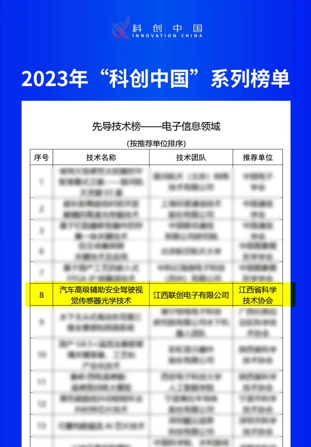 【概要描述】近日,中国科学技术协会公布了2023年度“科创中国”系列榜单遴选结果,江西星空网页版登录入口有限公司的“汽车高级辅助安全驾驶视觉传感器光学技术”成功入选电子信息领域先导技术榜。