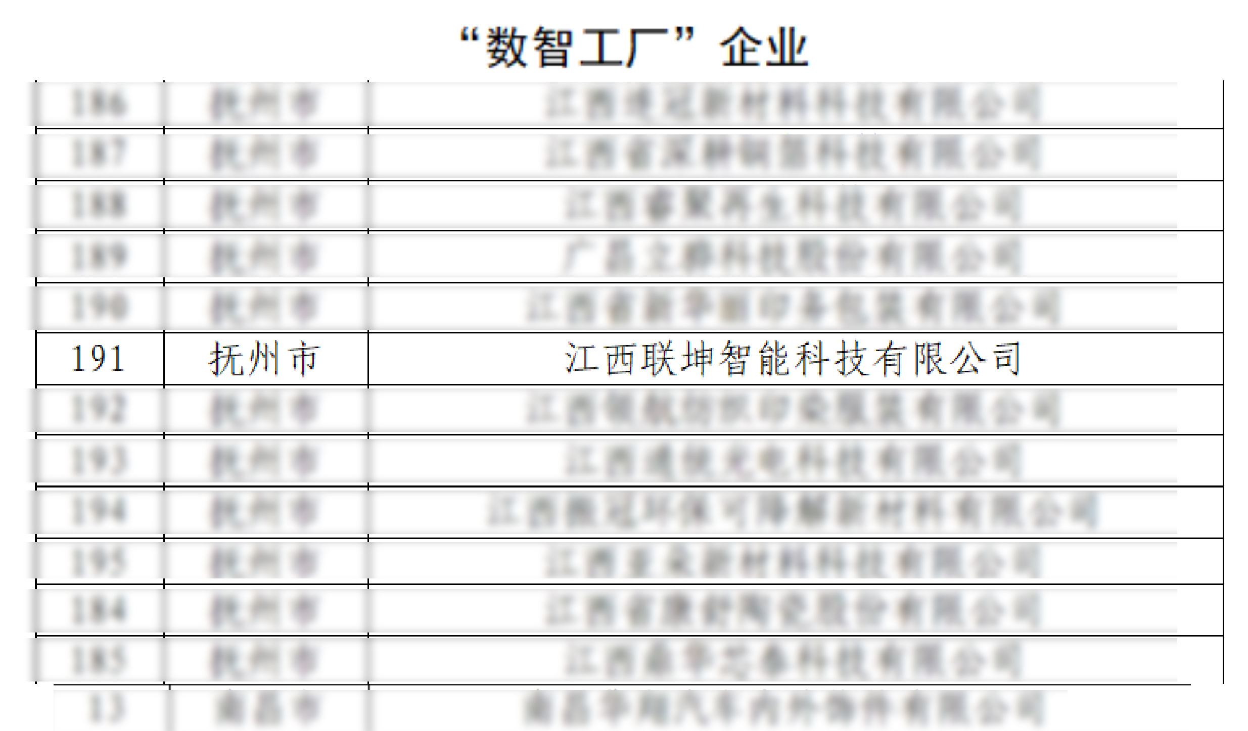近日,江西省工业和信息化厅正式公布第二批“数字领航”企业“数智工厂”认定名单。其中,江西联坤智能科技有限公司(以下简称“江西联坤”)凭借在制造业数字化转型领域突出成效和创新实践成功入选“数智工厂”行列此次入选,不仅标志着江西联坤在智能制造体系建设、数字化能力构建等领域获得省级认可,更彰显了对公司持续推进技术革新与管理升级成果的充分肯定